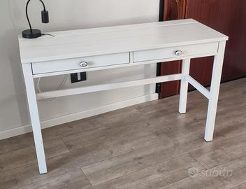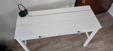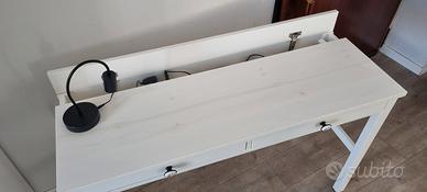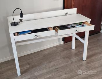 Scrittoio IKEA HEMNES, bianco, cm 120, in legno massiccio. Con 2 cassetti e sistema integrato per organizzare i cavi