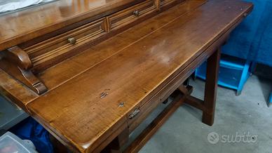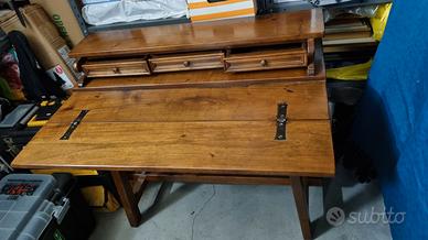 Scrittoio in arte povera con 3 cassettini e ribaltina per scrittura Misure:150 larghezza, profondità 60 e altezza 70 cm