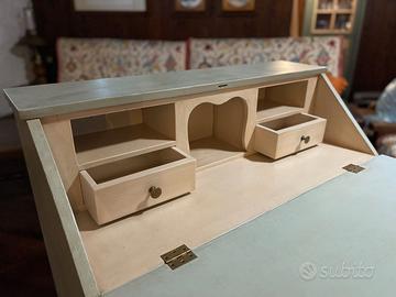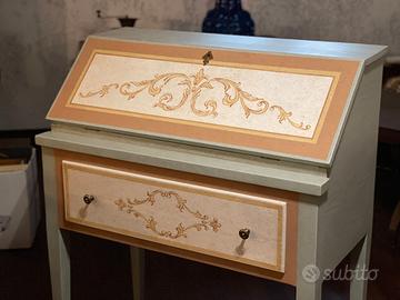 Vendo scrittoio in legno laccato molto bello. II mobile è in eccellenti condizioni, non presenta alcuna imperfezione. Ha l'anta apribile che funge da piano di appoggio. I ricami sono tutti dipinti a mano.