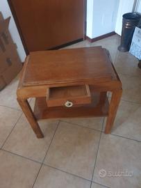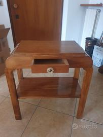 Presenta un cassetto con pomello originale in metallo, un ripiano inferiore aperto. E' una struttura solida e stabile dalle linee semplici ed eleganti.