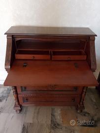 Scrittoio con cassetti e ribaltina in legno