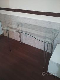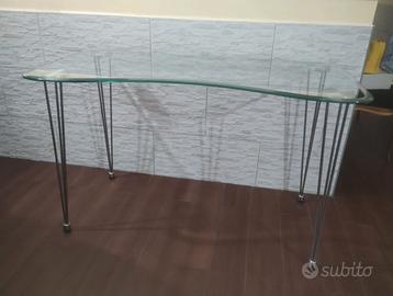 Scrittoio "a fagiolo" in vetro con bordi stondati e gambe in acciaio Misure 60 x 120 x h74