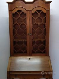 Scrittoio VINTAGE stile Ethan Allen. ricco di carattere e fascino. Il piano è dotato di 2 ripiani regolabili con ante in vetro "anticato" Il fondo ha quattro cassetti piu uno a vista vista, scrivania con coperchio a ribalta . , gambe sinuose