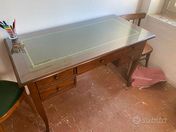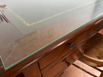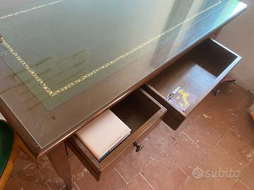 Noce, rifatto in stile Vetro, bordino pelle verde 130 x 65. Altezza 83