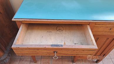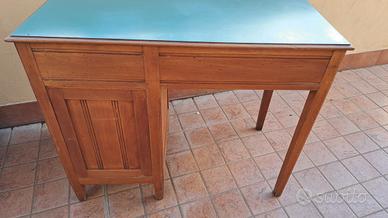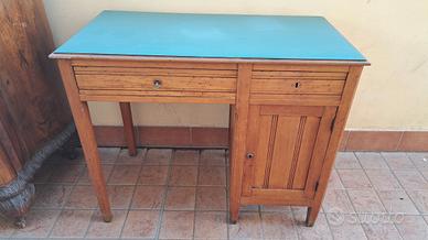 Piccolo scrittoio da centro primi 900 liberty in faggio piano in formica verde 1 cassetto e 1 anta misura 98x52 altezza 80....M&P Antichità siamo un negozio specializzato in antiquariato vintage e shabby vendita al dettaglio e all ingrosso scarichi settimanali oltre 500 articoli in negozio, abbiamo una vasta scelta di como comodini tolette armadi letti vetrine vetrinette credenze servanti angoliere librerie tavoli tavolinetti sedie poltrone poltroncine divani lampade lampadari tappeti scrivanie scrittoi secretere ribaltine consolle quadri cornici specchi cassapanche bauli oggettistica varia idee regalo e molto altro ci troviamo a Roma zona Castelverde via Massa San giuliano 26b POSSIBILITÀ DI CONSEGNA E SPEDIZIONE IN TUTTA ITALIA PER INFO LUCA