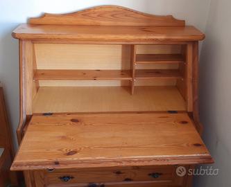 scrittoio "TRUMEAU" in abete rosso con anta ribaltabile e vani porta oggetti n. 3 cassetti smontabile dim. 102x52x130h cm