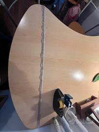Tavolo scrittoio angolare con tre piedi, in legno chiaro e metallo. Abbinabili due sedie da acquistare con il tavolo o separatamente) 40 € tavolo 30 € coppia di sedie pieghevoli