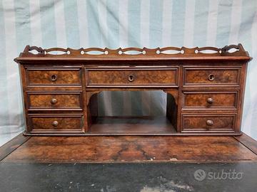 Con alzata munita di cassettiera a sei cassetti piccoli e uno centrale.
