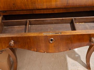 Piccolo scrittoio a ribalta. Tre cassetti e sportello con mensola. H 136 H piano scrittura 68 P 51 L 75. Adatto per ingresso, camera da letto, B&B. Ritiro a carico dell'acquirente.