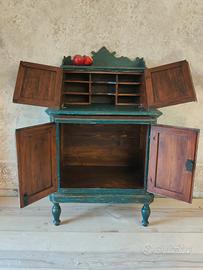 vendo questo scrittoio vecchissimo (interamente in legno ) della forma molto particolare, dipinto a mano con le tempere naturali a base di pigmenti ( patina antica). A 122cm P 45cm L 74cm