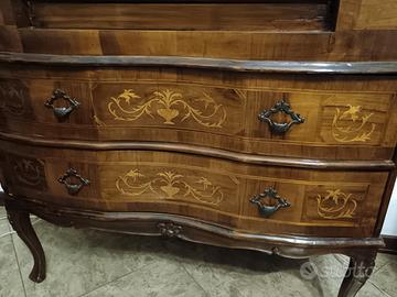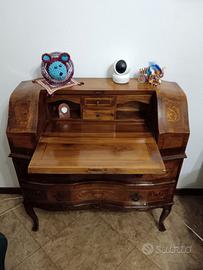 Scrittoio a ribalta in legno finemente lavorato con 2 cassettini interni e 2 cassetti estreni, ottimo stato.