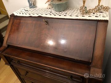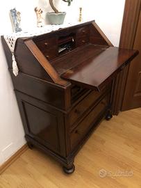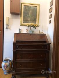 Splendido scrittoio ribaltina con tre cassetti in legno proveniente dalla Francia. Buone condizioni. Larghezza 86 cm - profondità 50 cm - altezza 106 cm. Vendo a € 230,00.