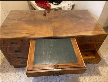 SCRIVANIA ANTICA, CON 8 AMPI CASSETTI CASSETTO PIU' CASSETTO CENTRALE COMPLETO DI PANNELLO SCRITTOIO. VISTA E PIACIUTA.