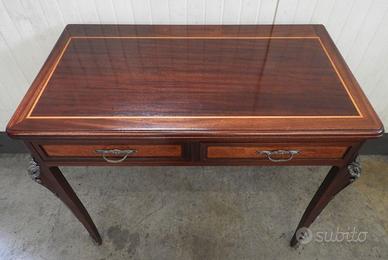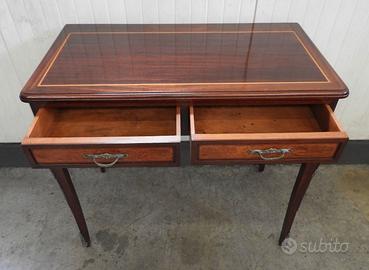 Scrittoio - scrivania in radica intarsiato con particolari in metallo