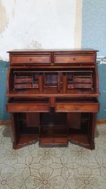 Scrittoio secretaire in legno massello con serrandina, cassetti e ante