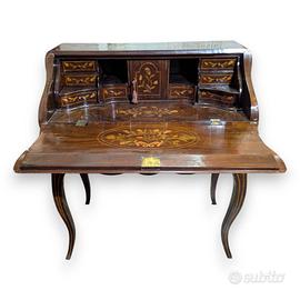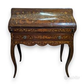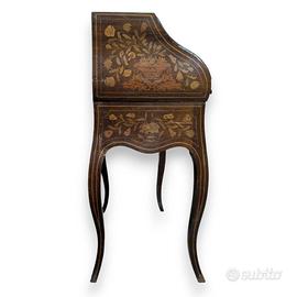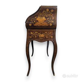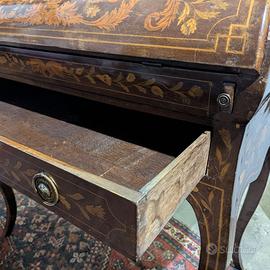 Ribaltina secretaire in stile Luigi XV prodotto nel Novecento, in legno con intarsi floreali varie essenze chiare (fiori, foglie e ghirlande). Dimensioni: