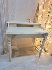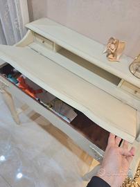 consolle scrittoio romantico,con cassettini e scomparto nascosto sul ripiano . Colore crema shabby