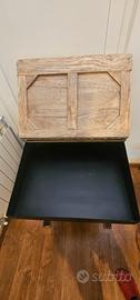 scrittoio vintage industrial in legno massiccio di mango e ferro, piano sollevabile e scomparto (H83, L61,P55) + sgabello stile industriale regolabile in legno e metallo (diametro 33) vendo a 300 euro.