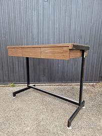 Scrivania/Scrittoio Vintage Mid-Century Anni '60. Scrittoio vinatage laminato plastico effetto legno con piedini in ottone struttura in metallo cromato, condizioni vintage molto buone come da doto. Chiavi mancanti.