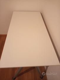 Bella scrivania, semplice ma molto stabile e robusta con piedi in acciaio verniciato regolabile in altezza, piano di scrittura in condizioni perfette. Smontata.