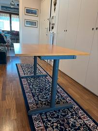 Scrivania con gambe a T in acciaio grigio. Dimensioni 120 x 80 color ciliegio Buone condizioni solo qualche segnetto sul piano Non spedisco