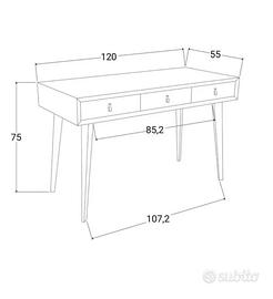 Regalo Scrivania 120x55 cm in rovere scuro con cassetto bianco e grigio - Hornet. Solo ritiro. Smontaggio a vostro carico. Una piccola macchia di colla presente.