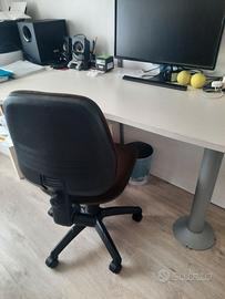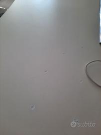 Scrivania molto spaziosa e solida. Si può smontare. I difetti sono alcuni segni dovuto all'uso e 4 fori stuccati in quanto per un periodo è stata utilizzata con l'onda al contrario. Ovviamente si può riverniciare col risultato di una scrivania enorme e di design. Ritiro a carico dell’acquirente. Consegna solo di persona. Disponibile per visione. Formula vista e piaciuta. Prezzo politico, non trattabile.