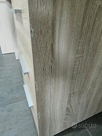 Vendo scrivania per inutilizzo. La scrivania è stata acquistata 2 anni fa e tenuta in buone condizioni, ha del colore rimosso sul lato destro come si evince dalle foto. Le dimensioni della scrivania sono 110Lx56Px73,5H e la consegno completa e già smontata in 3 pezzi: cassetti, base laterale e piano di appoggio.
