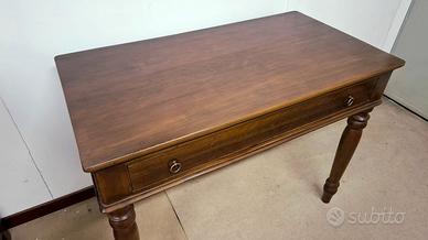Scrivania antica in legno massello di Noce, epoca di costruzione 1800, completamente restaurata.
