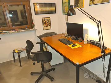 scrivania 80x160 con piedini regolabili in altezza (smontabile), con poltroncina girevole con braccioli e regolabile in altezza. Da valutare vendita separata. Disponibilità e costo spedizione da valutare in base alla distanza.