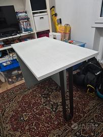 Vendo scrivania 90x51 altezza 75 per cameretta o studiolo, piano in rovere sbiancato, fianco grigio-verde, gamba in metallo nero, come nuova. prezzo trattabile