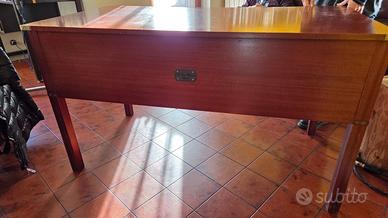 Scrivania a Giorno in Stile Marina in Mogano Scrivania a giorno in stile marina in mogano, Inghilterra XX secolo. fronte a 5 cassetti. Ferramenta in ottone. Presenta ammaccatura sul tavolo (vedi foto). e graffiatura.