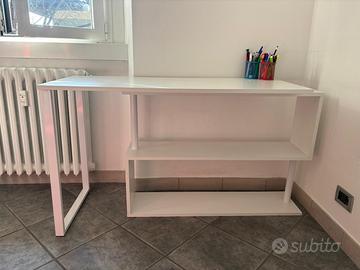 Scrivania angolare con scaffale girevole in legno bianco. Misure: 120x100x74 Acquistata nel 2022. Vendo causa trasloco. Ritiro a carico dell’acquirente a Milano. Il mobile verrà consegnato in parte smontato.