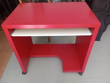 Vendo scrivania a rotelle con ripiano estraibile e comoda sedia rossa abbinata