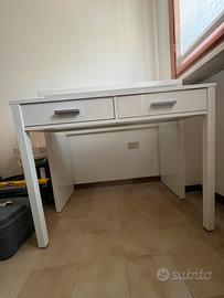 Scrivania a scomparsa bianca in laminato ottime condizioni lunghezza 99 cm altezza 73 cm, larghezza ripiano superiore 36, larghezza ripiano inferiore 34 larghezza totale 66 cm con due cassetti 38 x 29