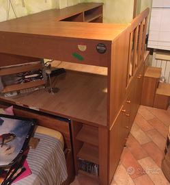 Vendesi scrivania con soppalco e spazio sottostante, letto contenitore (senza materasso) e armadio 2 ante, tutti in legno realizzati artigianalmente su misura da falegnameria, ottime condizioni.