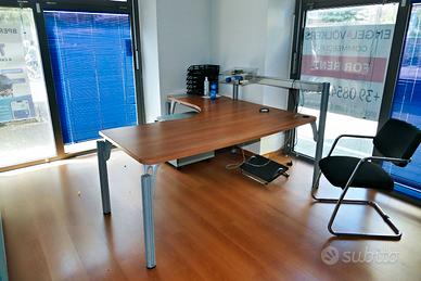 Scrivania in legno e ferro ad angolo con cassettiera 180 x 180 cm . Sedia e cassettiera inclusi Disponibili 7 Prezzo 300 cadauna. Ritiro e smontaggio a carico dell'acquirente