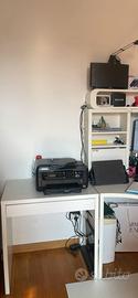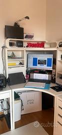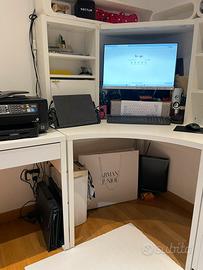 Come nuova completa di scrivania ad angolo con ripiavi vari come in foto + tavolo con cassetto utile anche come porta stampante o altro