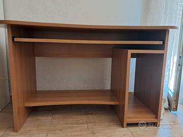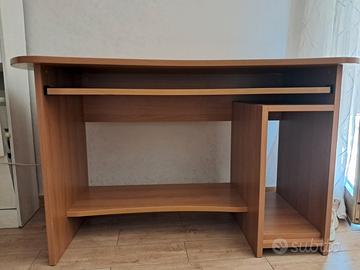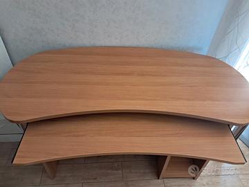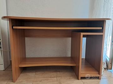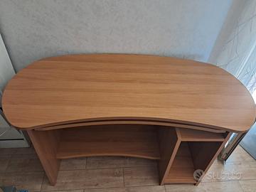 scrivania in legno massiccio , con sottobanco rientrabile e poggiapiedi