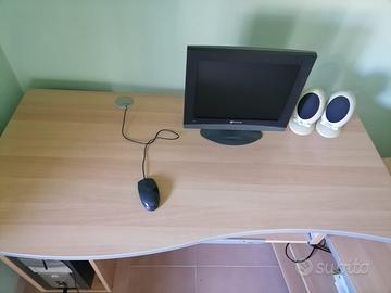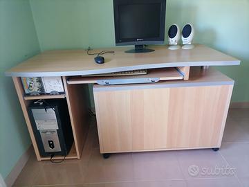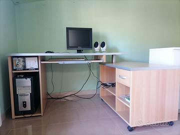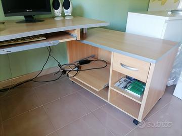 Vendesi scrivania angolare con modulo laterale mobile. Misure scrivania frontale 138x69 cm. Misure modulo laterale 90x52 cm. Misure scrivania e modulo laterale sullo stesso lato 217 cm. Smontaggio e ritiro a carico dell’acquirente. Non spedisco.