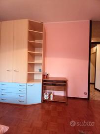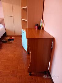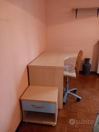 Vendo per trasloco set completo per angolo studio.. Il set è in buoni condizioni ed è perfettamente coordinato all'armadio e ai letti che trovate nei miei altri annunci. Il set include: Scrivania Angolare: Ampio piano in legno chiaro con sagomatura funzionale per l'angolo. Struttura mista robusta (pannello in legno a sinistra e gamba metallica satinata a destra). Cassettiera Bassa: Abbinata, con 1 cassetto color celeste pastello e un pratico vano a giorno sottostante. Sedia Ergonomica: sedia con seduta in legno forato, base metallica a stella e rotelle. Regolabile in altezza. Mensola Coordinata: Di colore chiaro blu scuro, con supporti originali inclusi. Dimensioni (prendere misure precise!): Dimensioni: Altezza Totale: 76+41 cm Larghezza Totale: 135+48 cm Profondità: 90,5+35,5 cm Ritiro e Logistica (Da leggere con attenzione): Il set è disponibile per il ritiro immediato. NON EFFETTUO SPEDIZIONE. LO SMONTAGGIO, IL TRASPORTO E IL CARICO SONO A TOTALE CARICO DELL'ACQUIRENTE. lIl mobile si trova a: Pavia, Zona Città giardino, al primo piano. Prezzo per il set completo: 150€ trattabile. Contattatemi via chat per organizzare una visita o per altre foto. SCONTO CAMERETTA: Se prendi l'intero blocco (Armadio + Letti, scrivania), vendo tutto a 500€ anziché 650€