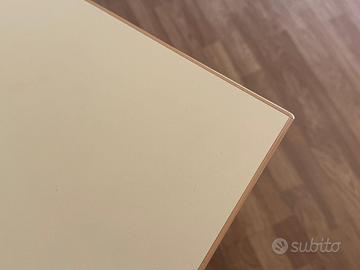 Colore chiaro effetto legno con struttura robusta e piano spazioso.