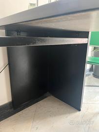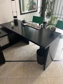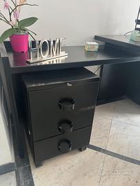 SCRIVANIA TECNO NERA angolare corredata da cassettiera a tre cassetti.