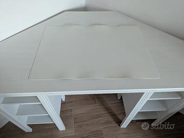 Scrivania angolare IKEA Brusali bianca effetto legno, salvaspazio con ripiani ideale per smart working o studio. Vendo scrivania angolare IKEA modello Brusali, colore bianco effetto legno, attualmente fuori produzione. Perfetta per smart working, studio o cameretta grazie alla struttura angolare compatta e ai numerosi ripiani integrati che permettono di organizzare al meglio lo spazio. 📏 Dimensioni: larghezza 120 cm, profondità massima 73 cm, altezza 73 cm. 🧩 Caratteristiche: ampio piano di lavoro superiore, piano inferiore più piccolo, 2 colonne laterali con un totale di 6 ripiani, struttura solida e stabile. 🎁 Inclusi in regalo due salva scrivania/mousepad in ottime condizioni: uno bianco IKEA e uno a forma di panda mai utilizzato. 📌 Condizioni: ottime, vendo per cambio arredo. Presenta solo minimi segni frontali dovuti allo sfregamento della sedia, facilmente sistemabili con vernice adatta. 📍 Ritiro a Casalecchio di Reno (zona uscita autostrada/tangenziale). Possibilità di consegna già smontata in parti per facilitare il trasporto.