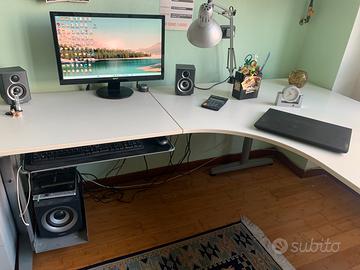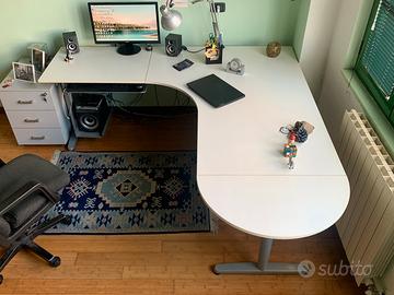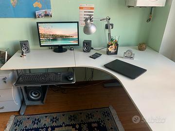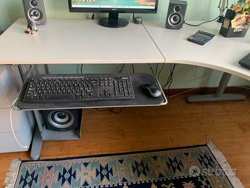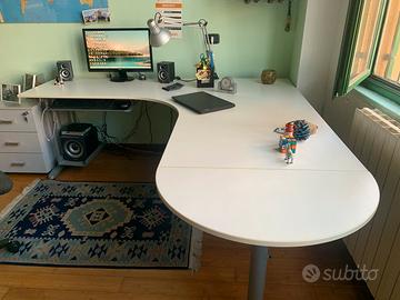 Scrivania Angolare IKEA Galant 200x200 + Accessori (Porta PC e Tastiera) Descrizione: Vendo scrivania angolare IKEA serie GALANT, nota per la sua estrema robustezza e stabilità (struttura in acciaio). Ideale per ufficio, gaming o smart working grazie all’ampio spazio di lavoro. Caratteristiche e Misure: Dimensioni totali: 200 x 200 cm Profondità piano: variabile (lato stretto 60 cm / lato profondo 90 cm per una postazione ergonomica) Colore: Bianco Gambe: Regolabili in altezza (permettono di livellarla perfettamente o adattarla alla propria statura). Accessori inclusi nel prezzo: Supporto tastiera scorrevole: a scomparsa sotto il piano per recuperare spazio. Supporto Tower PC: agganciato alla struttura per tenere il case sollevato da terra (meno polvere e più ordine). Stato del prodotto: La scrivania è in ottime condizioni generali, solida e senza difetti strutturali. Note per il ritiro: Smontaggio: da smontare Zona:Milano via Ripamonti Trasporto: A carico dell'acquirente (viste le dimensioni, è necessario un furgoncino o un'auto spaziosa).