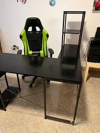 Vendo elegante scrivania ad angolo dal design moderno e funzionale, ideale per lo studio, il lavoro da casa o per il gaming. Realizzata in metallo nero opaco e pannelli in legno laminato, offre una struttura solida e ampio spazio per tutte le tue esigenze.
