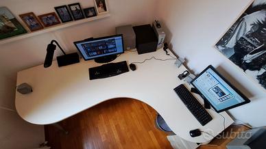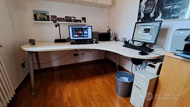 Scrivania angolare in legno bianco crema con gambe in metallo
