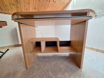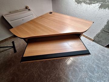 Vendo questa scrivania angolare, adatta per ospitare un computer fisso con schermo, tastiera e relativi accessori. In legno chiaro, è composta da: