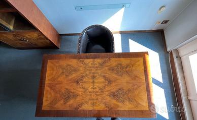 Scrivania d'epoca in radica anni '40. Possibilità di completarlo con poltroncina e con due librerie (una con vetrina). Ritiro a cura dell'acquirente.