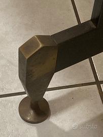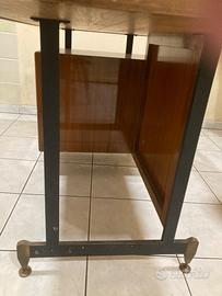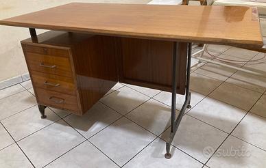 Iconica scrivania in stile scandinavo con struttura in metallo nero, 3 cassetti, piano in legno, piedini in ottone.